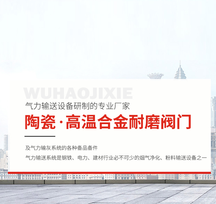無(wú)錫伍豪是一直致力于氣力輸送設(shè)備的研制的專業(yè)廠家,專業(yè)生產(chǎn)各種陶瓷、高溫合金耐磨閥門(mén),及氣力輸灰系統(tǒng)的各種備品備件 對(duì)于減輕工人勞動(dòng)強(qiáng)度、改善生產(chǎn)環(huán)境以及減少環(huán)境污染能起到非常重要的作用。